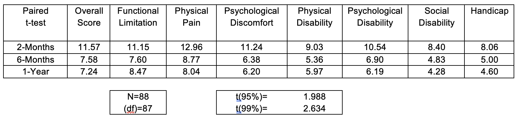 Figure 3. Paired t-test comparing preoperative and postoperative survey results.