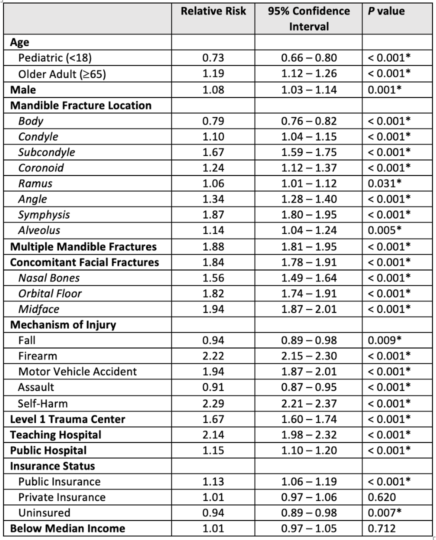 Table 6. Relative Risk of Admission for Mandible Fractures.
